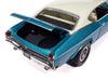 • Brand new 1/18 scale diecast car model of 1969 Chevrolet Chevelle SS 396 Azure Turquoise Metallic with White Stripes, White Vinyl Top, and Interior "Muscle Car & Corvette Nationals" (MCACN) "American Muscle" Series die cast model car by Auto World.
