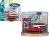 1964 1/2 Ford Mustang Rangoon Red with Red Interior with Collectible Tin Display "Introducing The Ford Mustang" "Greetings from World's Fair 1964-1965" 1/64 Diecast Model Car by Johnny Lightning