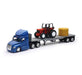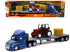 - Brand new 1/43 scale diecast model of Freightliner Cascadia with Flatbed Trailer Blue with Farm Tractor Red and Hay Bales "Long Haul Trucker" Series die cast model by New Ray.