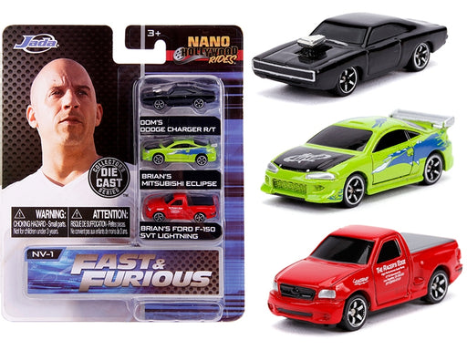 JadaBrand new diecast car models of "Fast & Furious" Movie 3 piece Set Series 4 "Nano Hollywood Rides" die cast model cars by Jada. Brand new box....